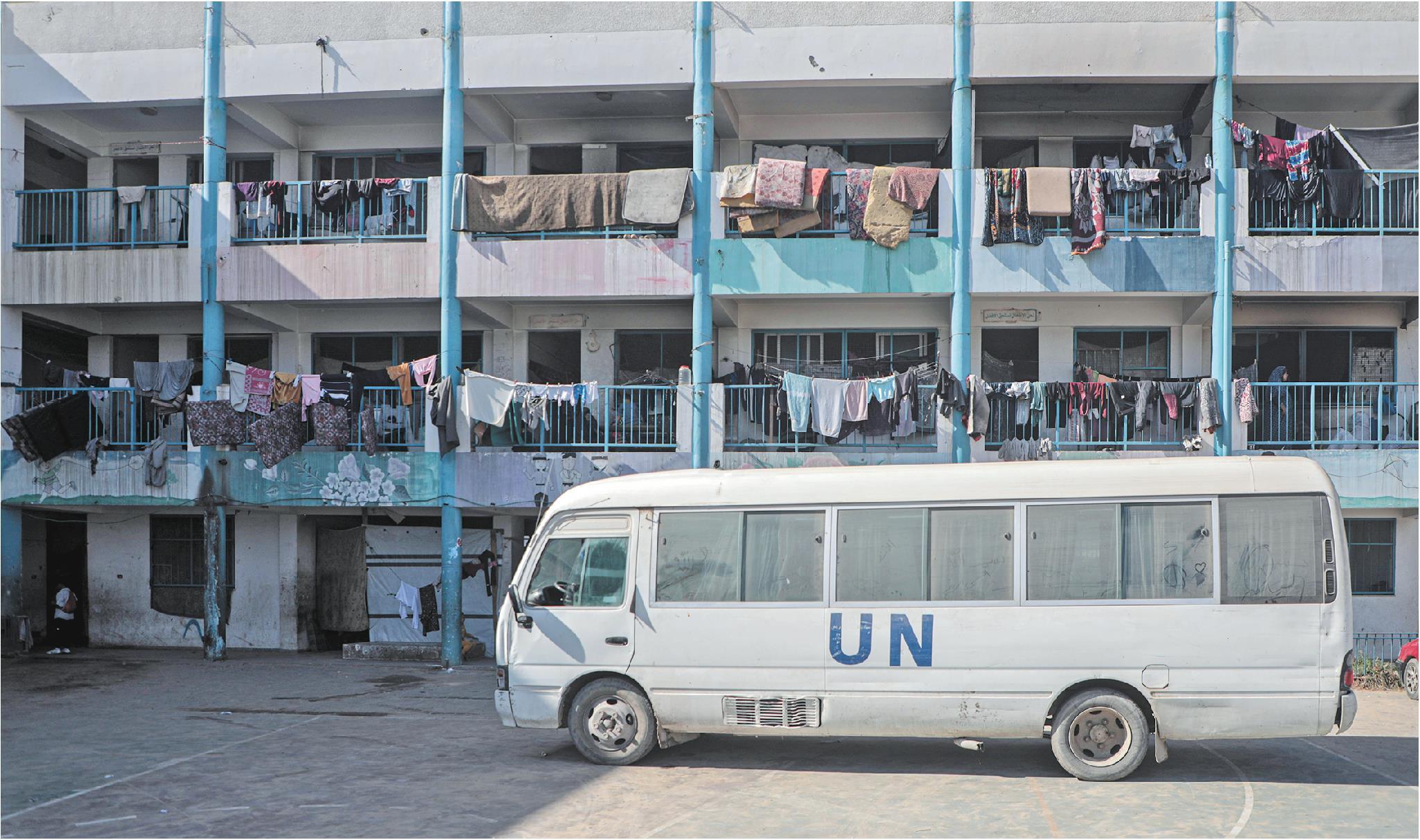 这是10月29日在加沙地带汗尤尼斯拍摄的一处联合国近东巴勒斯坦难民救济和工程处(近东救济工程处)开设的避难所。
