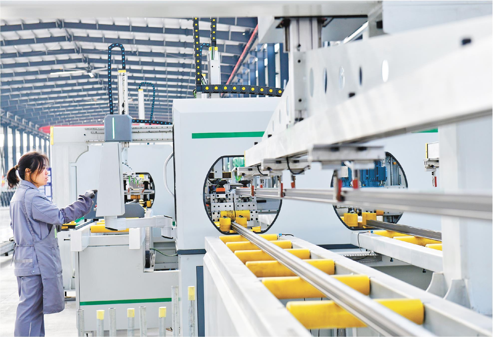 11月7日,在山东乾正数控机械有限公司,工作人员在断桥铝生产线值守。