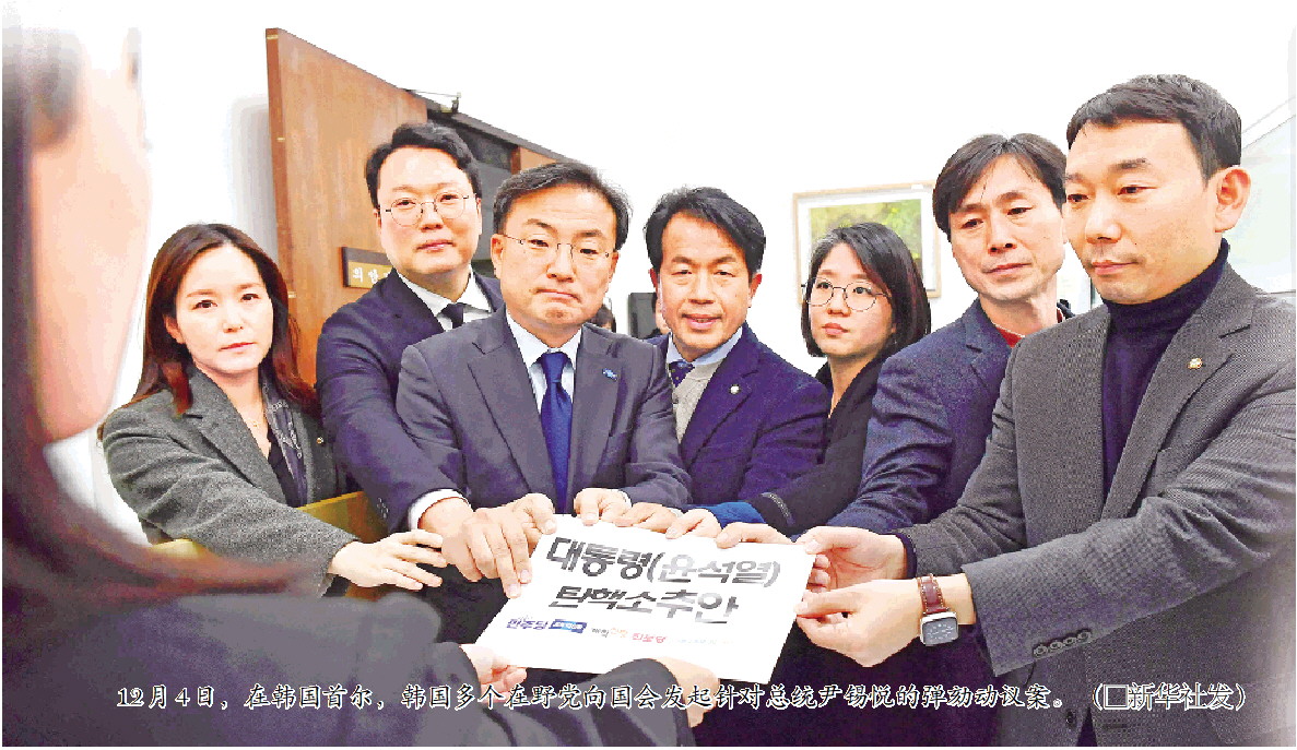 12月4日,在韩国首尔,韩国多个在野党向国会发起针对总统尹锡悦的弹劾动议案。(□新华社发)