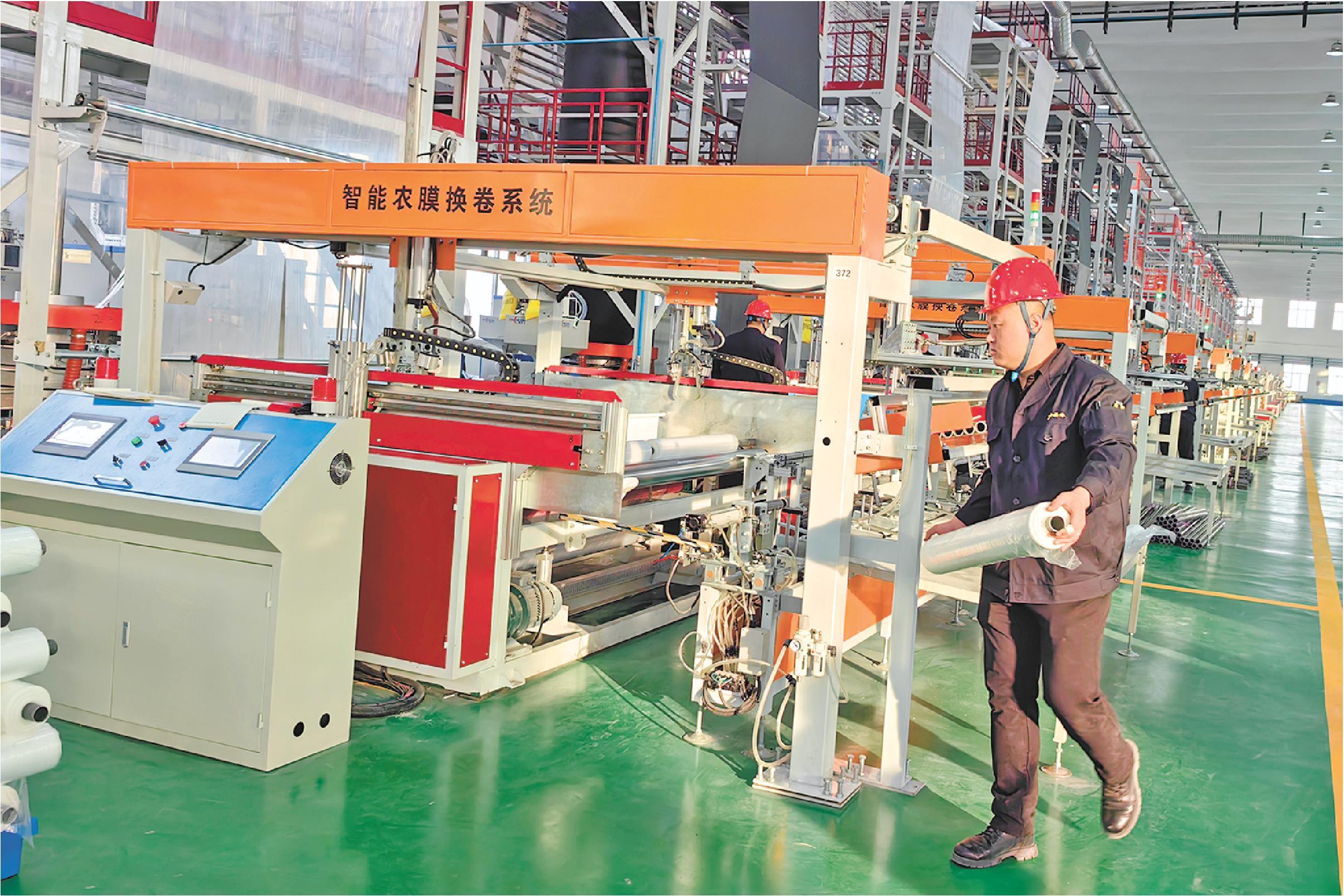 12月9日,在山东蓝海晶体材料科技有限公司厂房内,工人们正在生产全生物降解地膜。由于添加了高纯单晶体纤维,这种地膜的保水保温性能、强度、韧性大大提升。