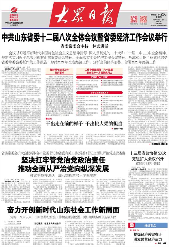中共山东省委十二届八次全体会议暨省委经济工作会议举行