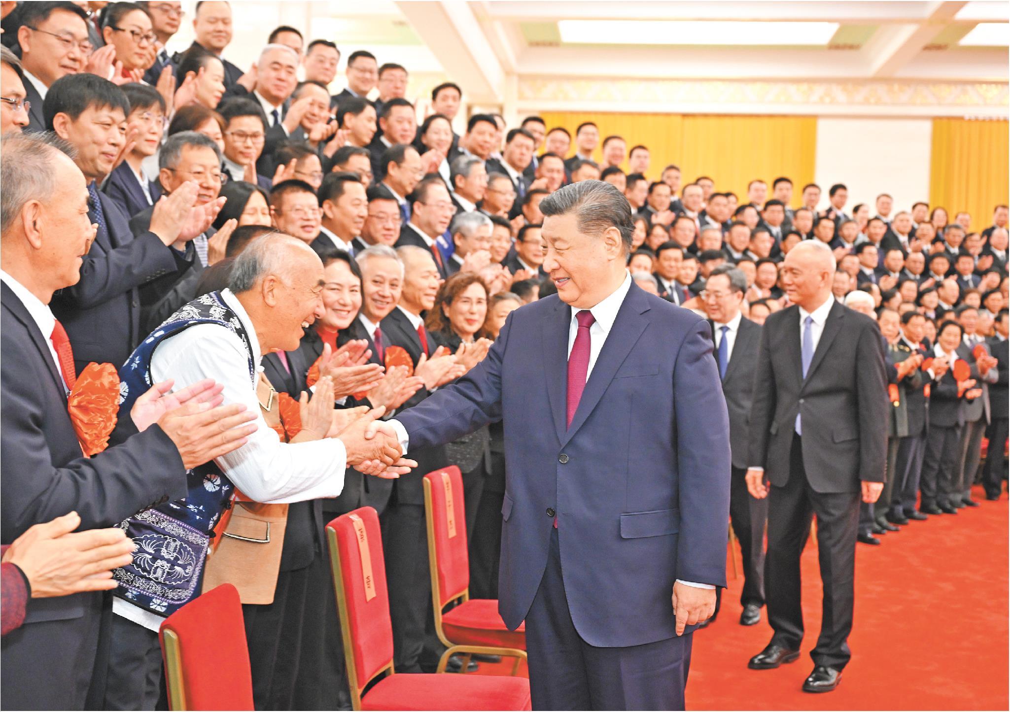 12月31日,党和国家领导人习近平、蔡奇、丁薛祥等在北京人民大会堂接见全国离退休干部先进集体和先进个人受表彰代表。 □新华社记者 李学仁 报道
