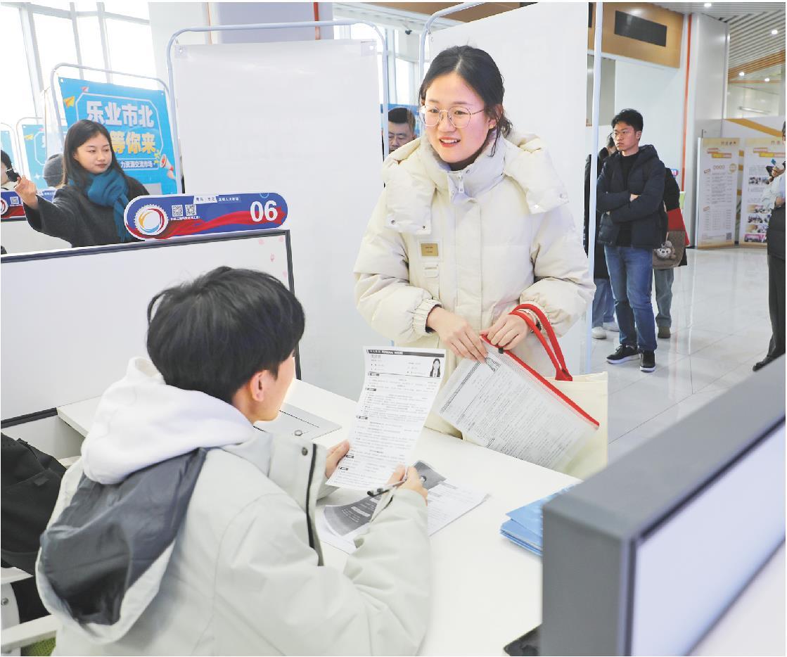 本报青岛1月8日讯 今天,2025年青岛市“青雁归巢”寒假活动在青岛国际人力资源服务产业园启动,市北区“智汇北聚”专场招聘会(上图)同时举办,这也是2025年青岛市首场青年人才招引活动。