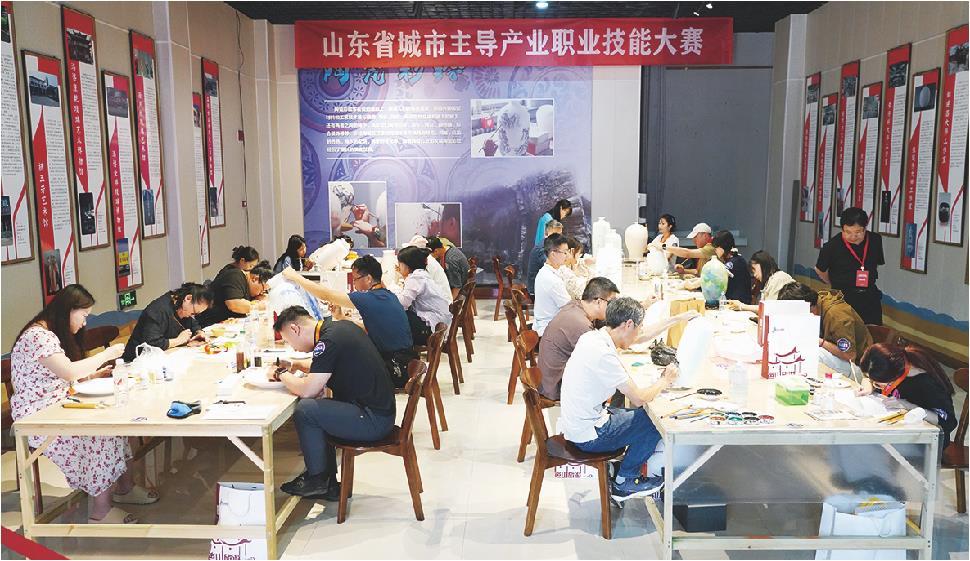 2024年7月3日上午,山东省城市主导产业职业技能大赛首场赛事在淄博开赛,150余名来自全国各地的陶瓷琉璃产业工人参赛。图为选手在比赛中。