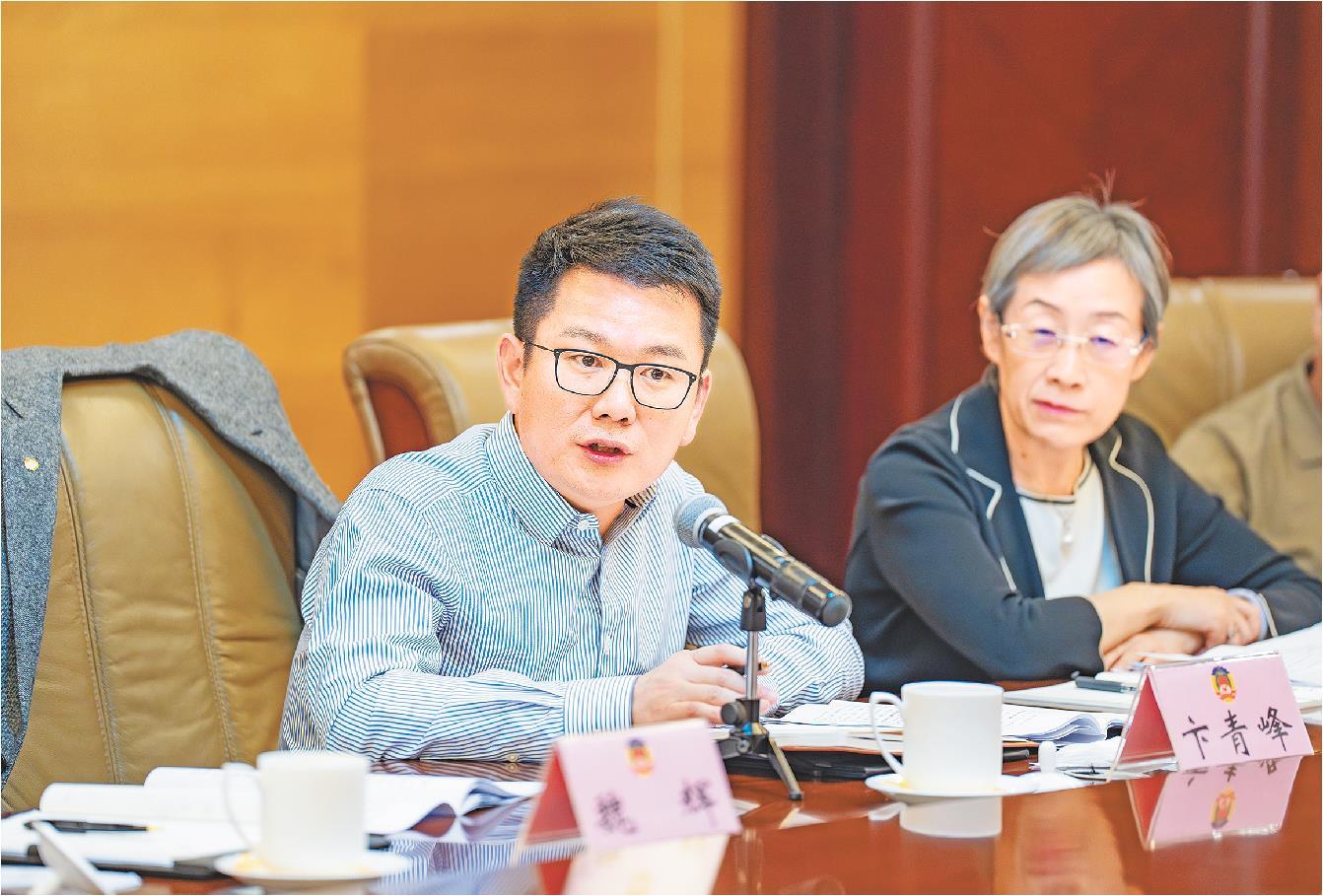 1月20日,在小组会议上,卞青峰(左)委员结合我省体育产业发展实际,就激发冰雪经济活力、打造体育旅游精品线路提出建议。