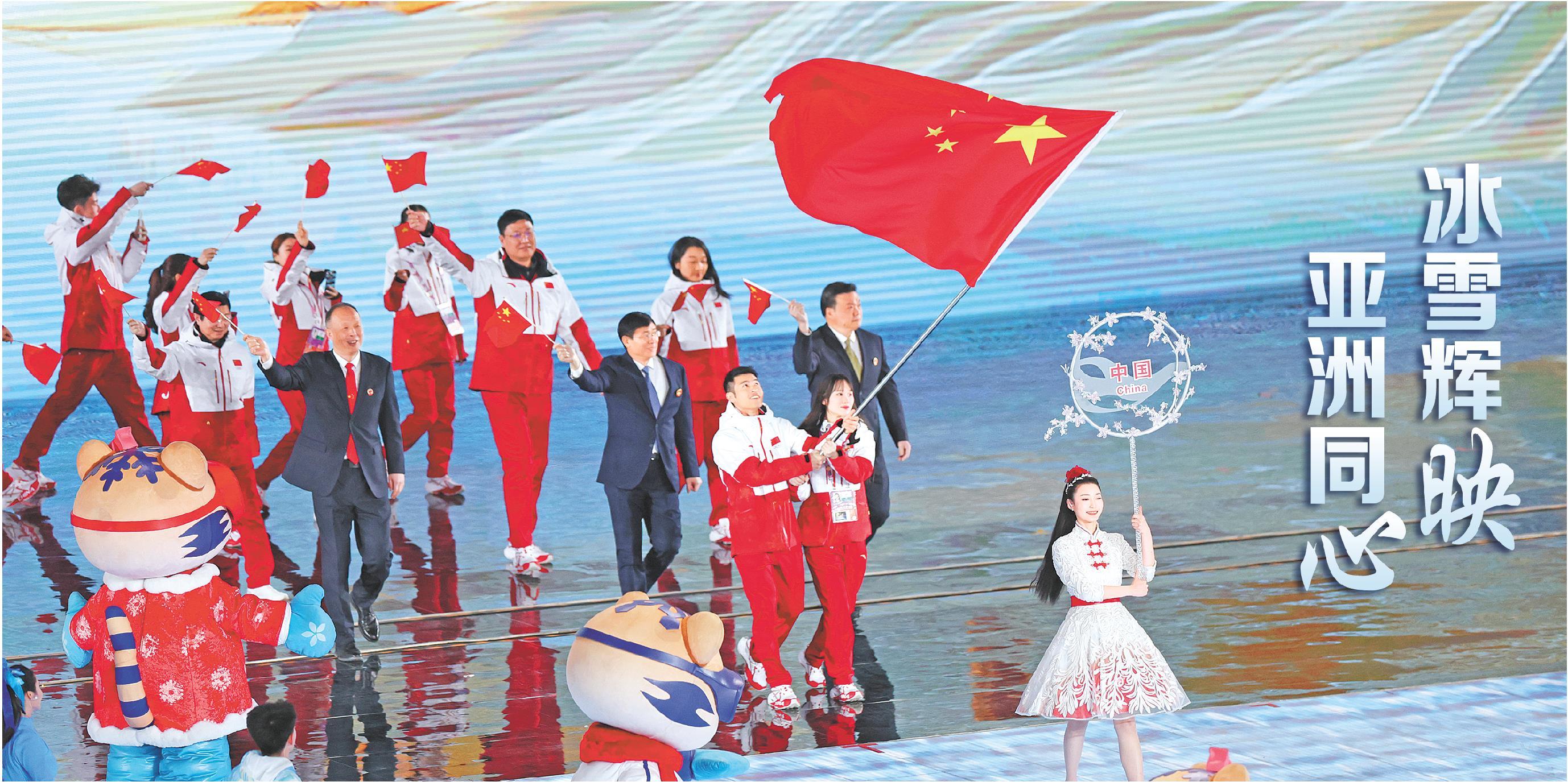 2月7日,中国体育代表团在开幕式上入场。(□记者 于晓波 报道)