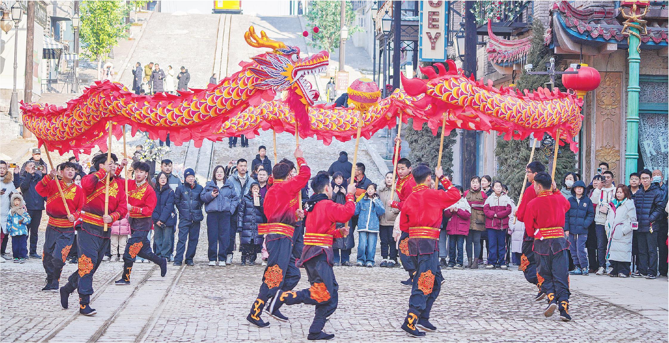 今年春节期间,乐陵影视城推出了舞龙、舞狮等各种表演,深受游客欢迎。