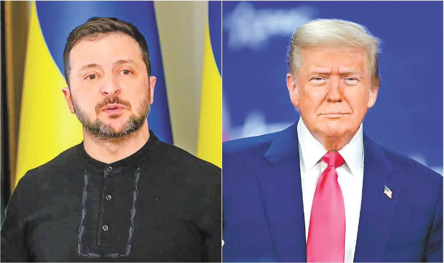 乌克兰总统泽连斯基和美国总统特朗普拼版图片。