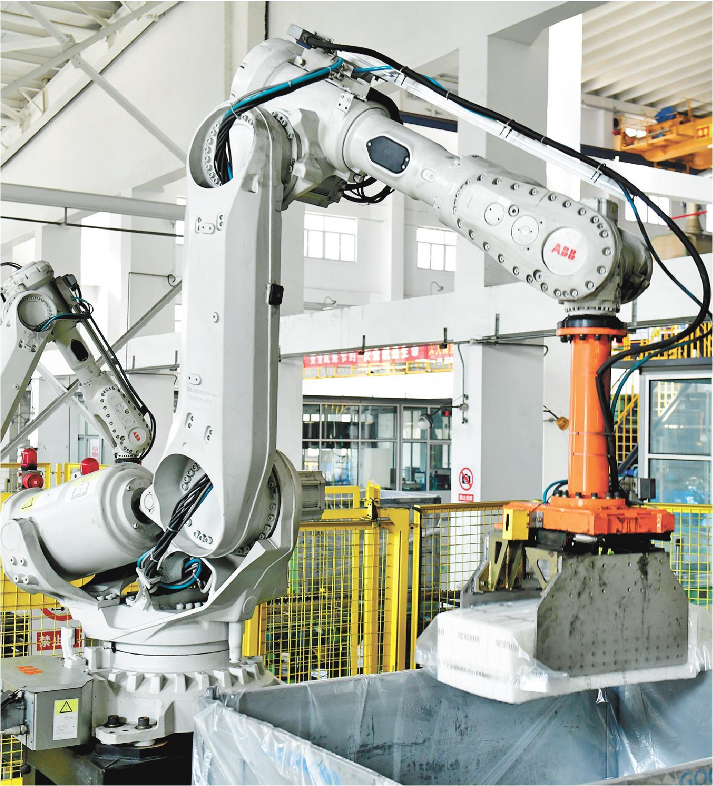 2月26日,山东京博中聚新材料有限公司,工业机器人在分装丁基橡胶产品。