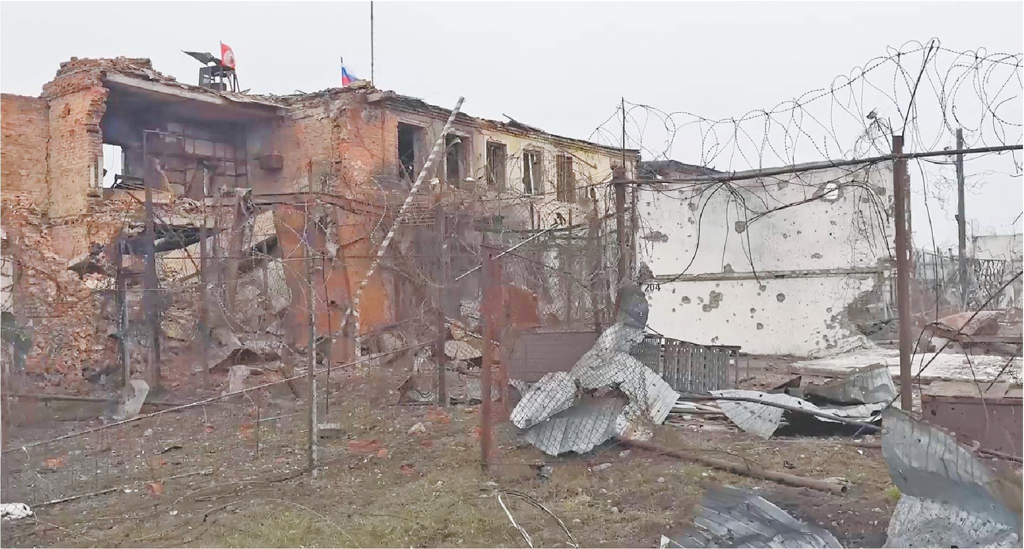 这张俄罗斯国防部3月13日发布的视频截图显示的是库尔斯克州被损坏的建筑。(□新华社发)