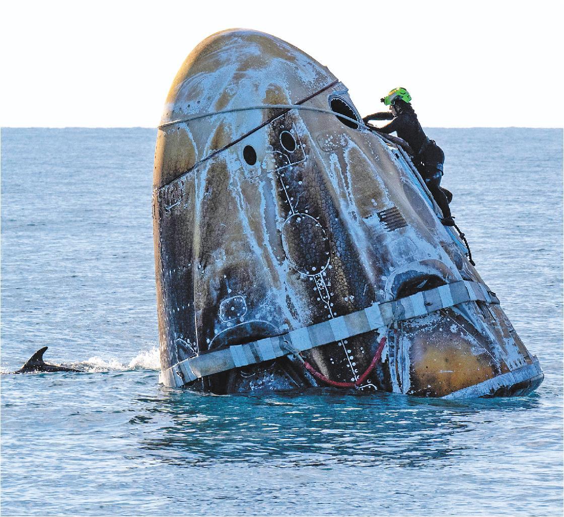 美国“龙”飞船载滞留空间站宇航员返回地球