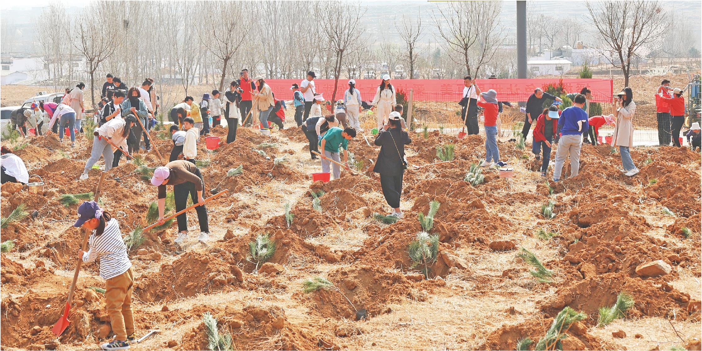当前,滕州市造林工作取得初步成效,莲青山区域已栽植黑松、红叶石楠、黄栌等各类苗木28.13万株,新栽和补植苗木共5.6万余株,修复破损树穴围堰1万余个,树林覆盖率日益扩大。图为近日莲青山区域植树现场。