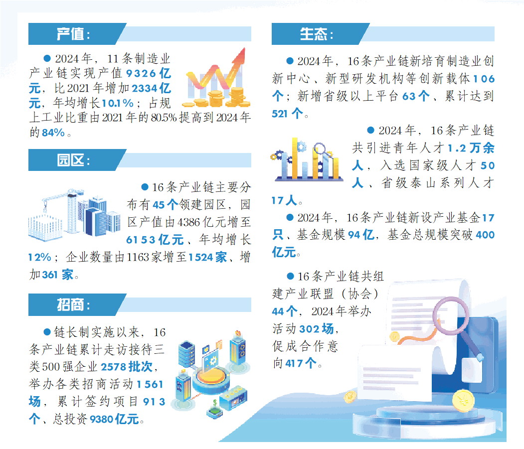 2024年,11条制造业产业链实现产值9326亿元,比2021年增加2334亿元,年均增长10.1%,占规上工业比重达84%;