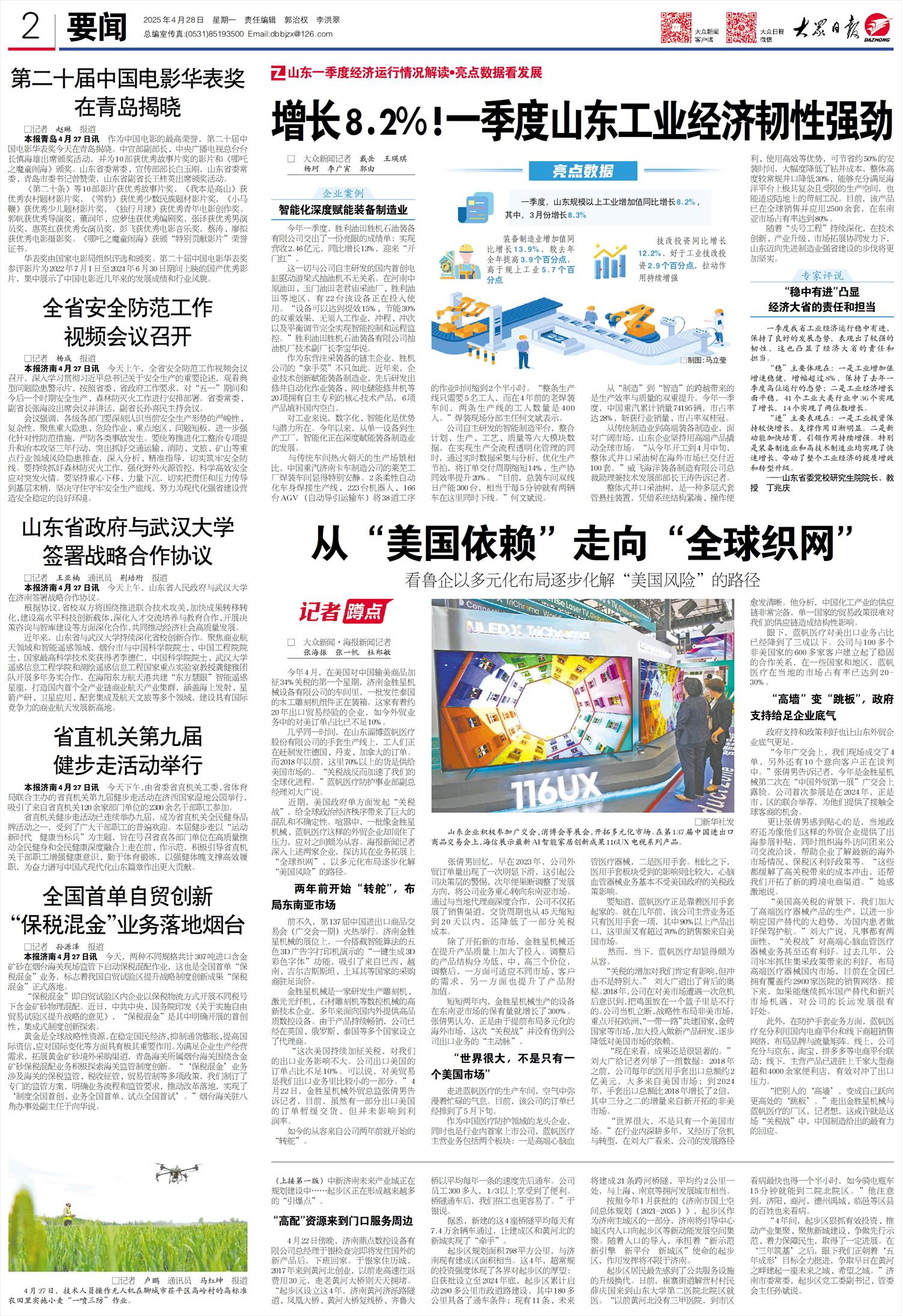 增长8.2%!一季度山东工业经济韧性强劲