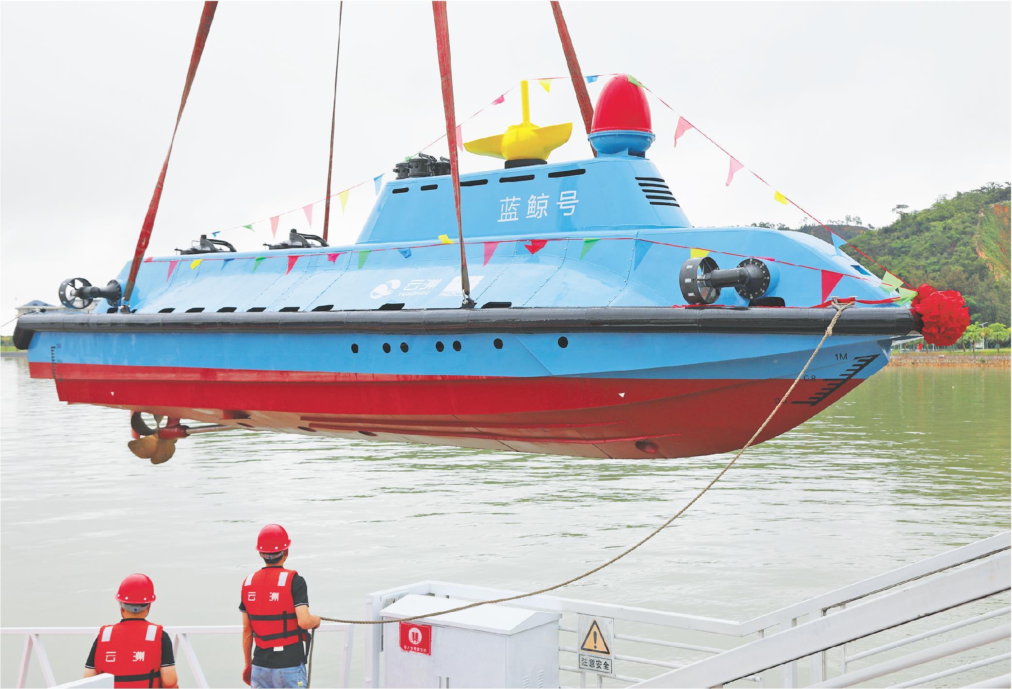 4月28日,“蓝鲸号”高速可潜无人艇在广东珠海下水。