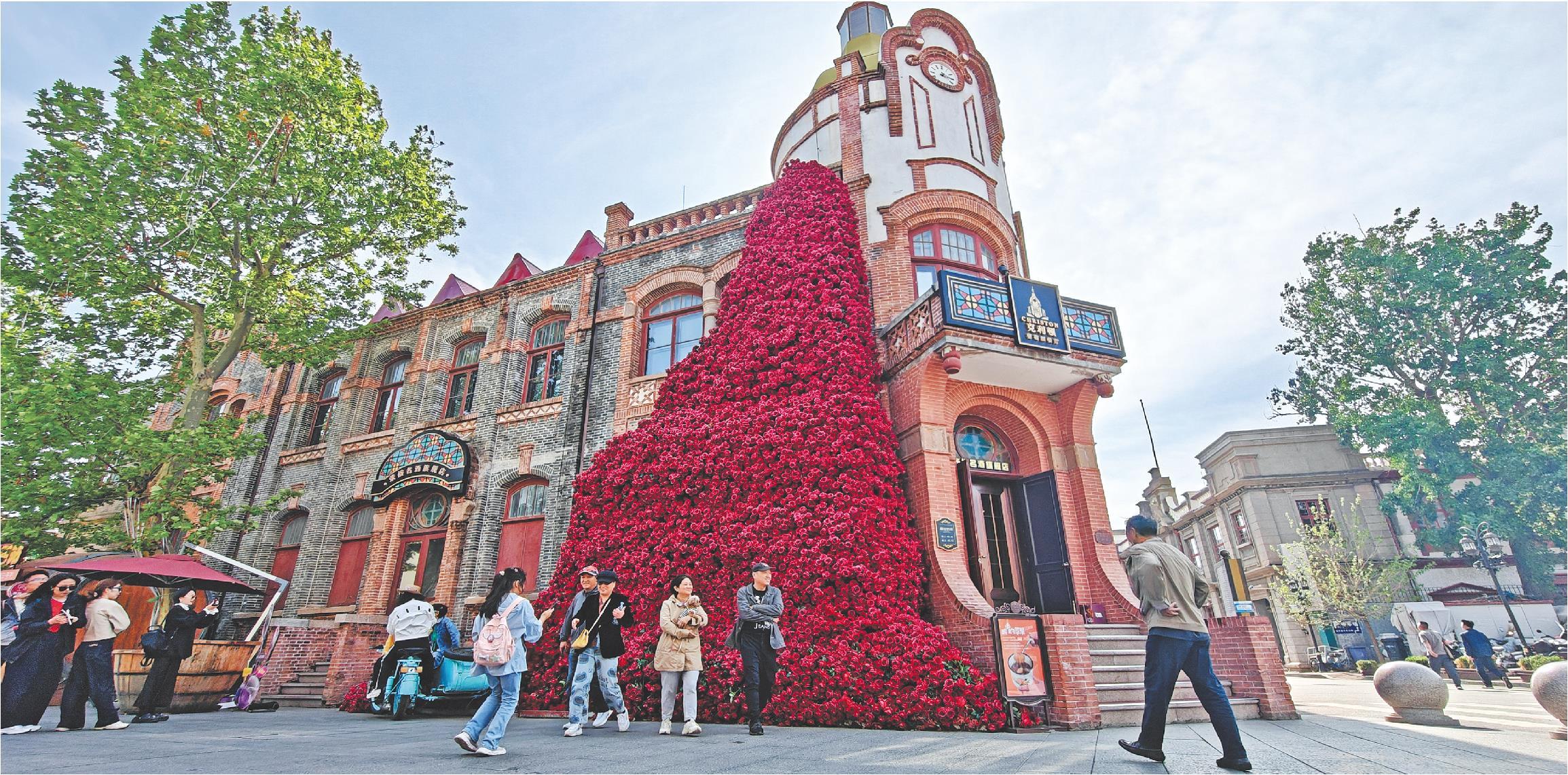 刚刚过去的“五一”假期,烟台朝阳街成为最热的网红打卡地。漫步朝阳街,随处可见的葡萄酒文化令人“微醺”:张裕旗下的克利顿葡萄酒主题餐厅,曾是克利顿饭店。100多年前,因孙中山先生来烟台时在此下榻,并为张裕题词“品重醴泉”而名声大振。门前的鲜花瀑布是游客必打卡景点之一。“流光·舞动时光”“葡萄·紫葡作舞”“碰杯·一抹绯红”“开瓶·红酒仪式”“张裕·红酒名片”等动态雕塑带领游客追溯红酒文化,呈现一场文娱感官盛宴。