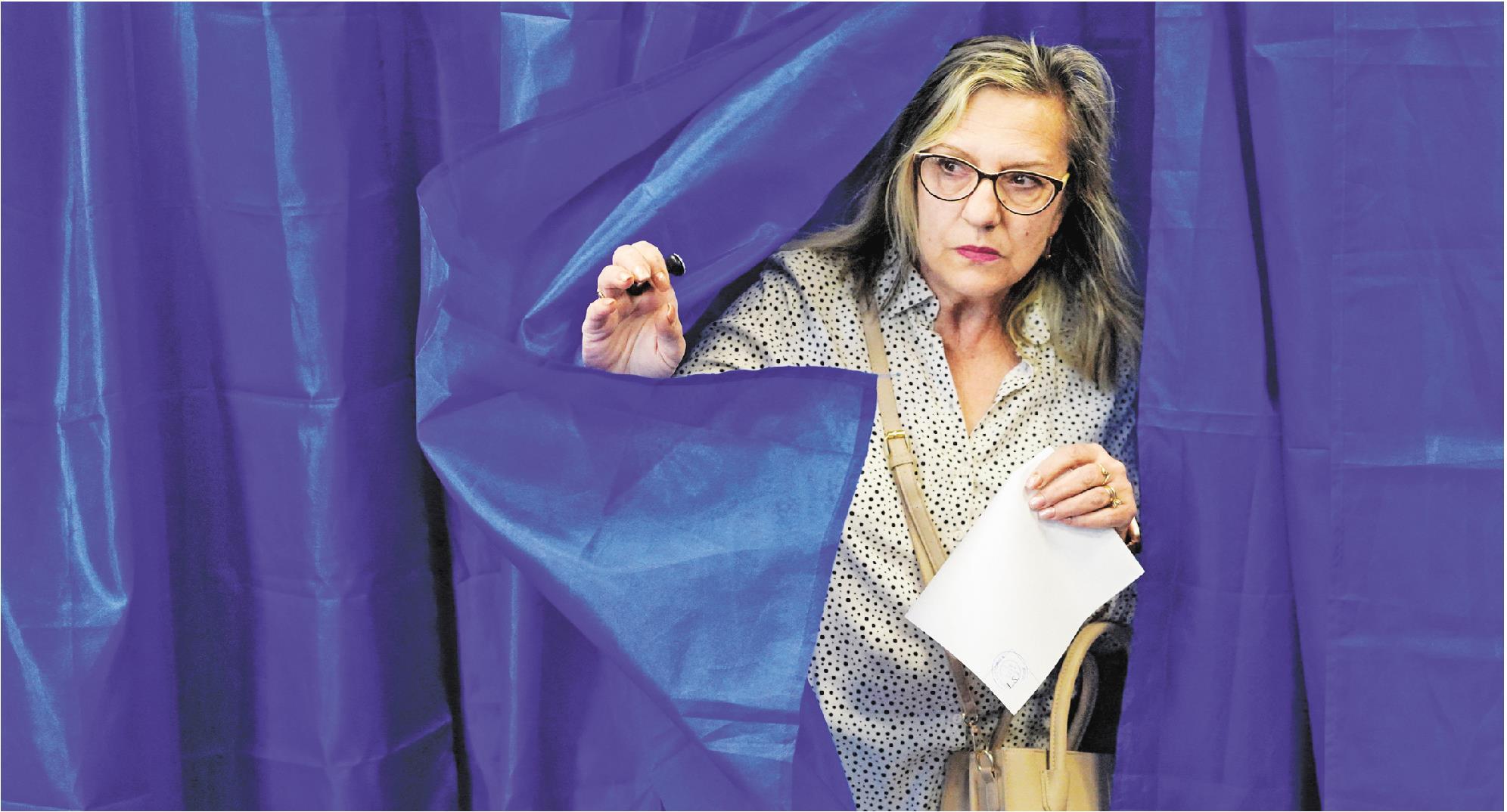 5月4日,选民在罗马尼亚布加勒斯特的投票站参加投票。