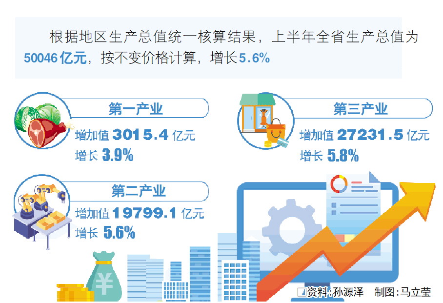 上半年全省生产总值为50046亿元,同比增长5.6%