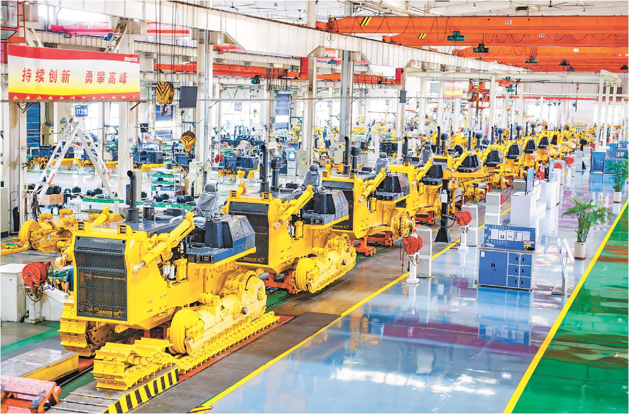 今年上半年,济宁市工程机械市场继续保持良好发展态势,市场活力进一步释放。山推工程机械股份有限公司全力抢订单、保交付、拓市场,企业发展信心增强,为济宁高质量发展再添新动力。图为山推推土机装配车间一派繁忙的景象。