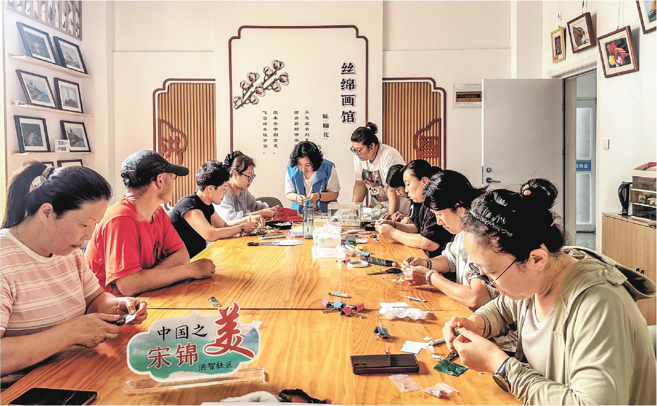 近日,在威海高区田和街道洪智社区,居民通过社区微就业帮扶项目,实现在“家门口”学手艺挣钱。