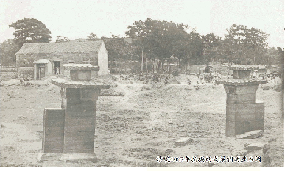 沙畹1907年拍摄的武梁祠两座石阙