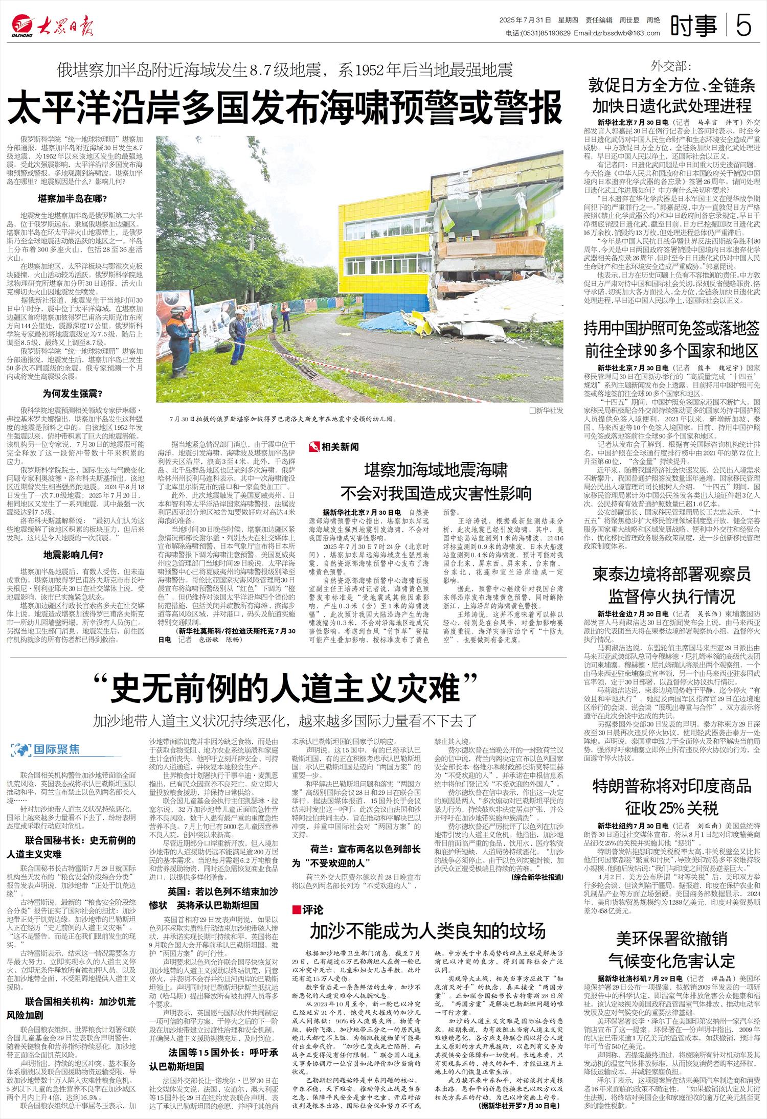 堪察加海域地震海啸不会对我国造成灾害性影响