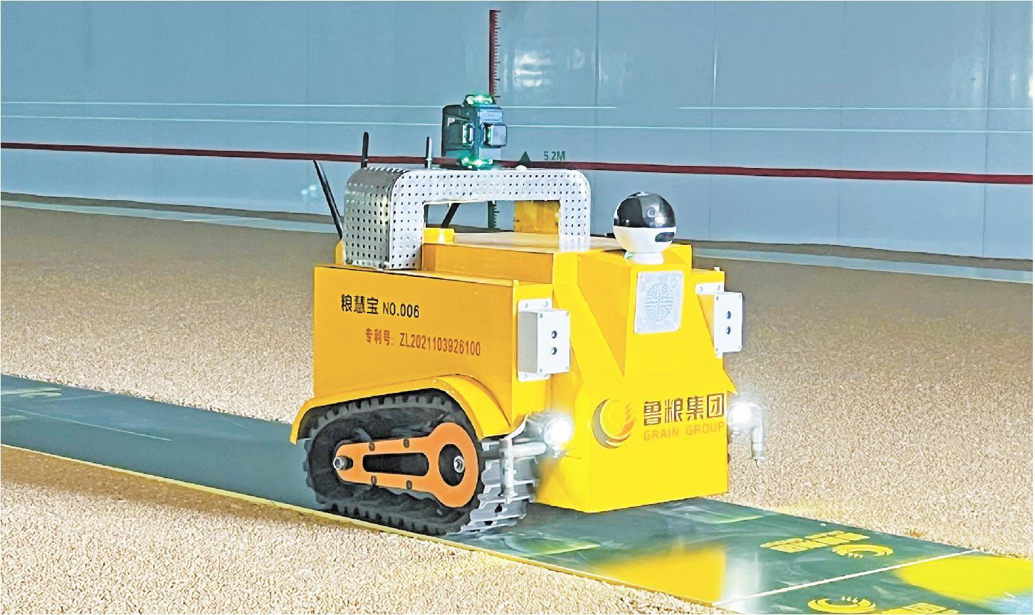 7月27日,山东省农业集团研发的“粮慧宝”粮仓智能巡检机器人在粮仓内工作。