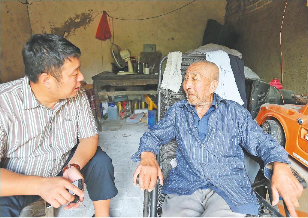 周文宪老人(现年98岁)向王勇讲述支前的故事