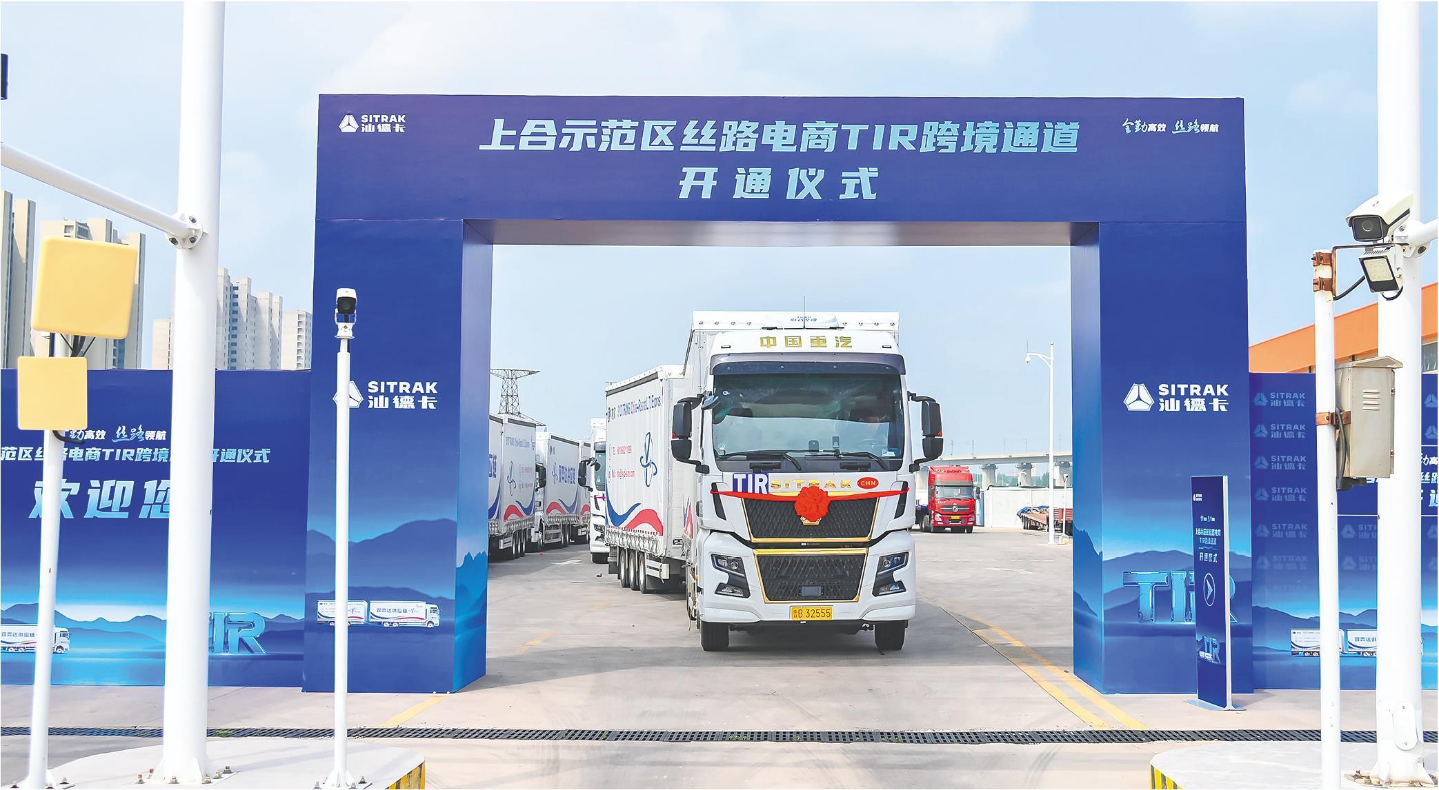 8月14日,上合示范区丝路电商TIR跨境通道正式开通。未来,该通道将聚焦跨境电商业务,探索拓展“TIR+跨境电商”新业态,为“丝路电商”综服基地提供高效物流支撑。