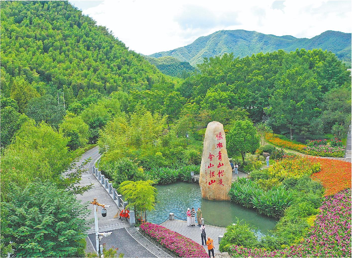 浙江省安吉县余村,镌刻着“绿水青山就是金山银山”的石碑矗立在流水之畔、青翠之间。