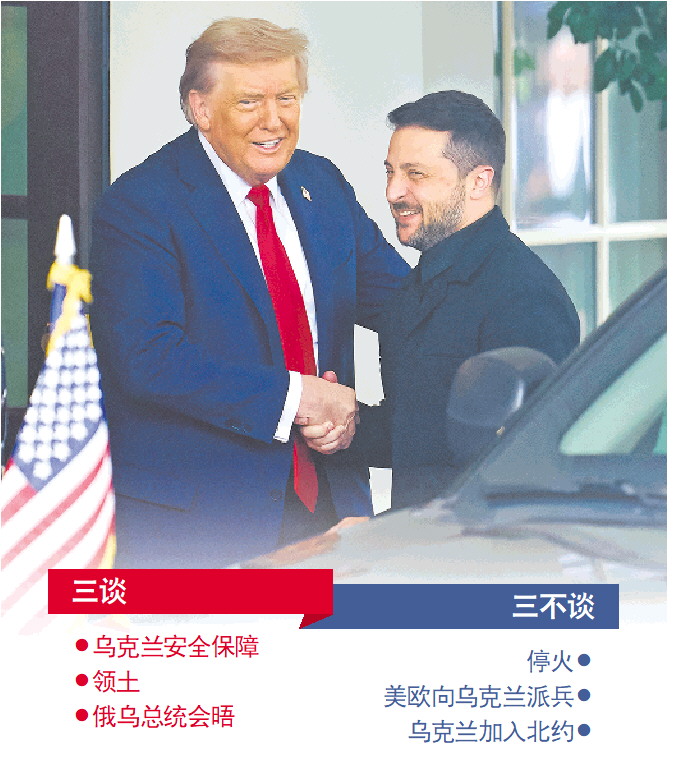 美国总统特朗普(上图左)18日在白宫与乌克兰总统泽连斯基(上图右)举行双边会晤,随后与泽连斯基以及多名欧洲领导人举行多方会晤。这是自今年2月在白宫与特朗普爆发激烈争吵后,泽连斯基再次赴美。这次白宫系列会晤清晰暴露出美国与乌欧在乌克兰问题上的三大立场分歧。