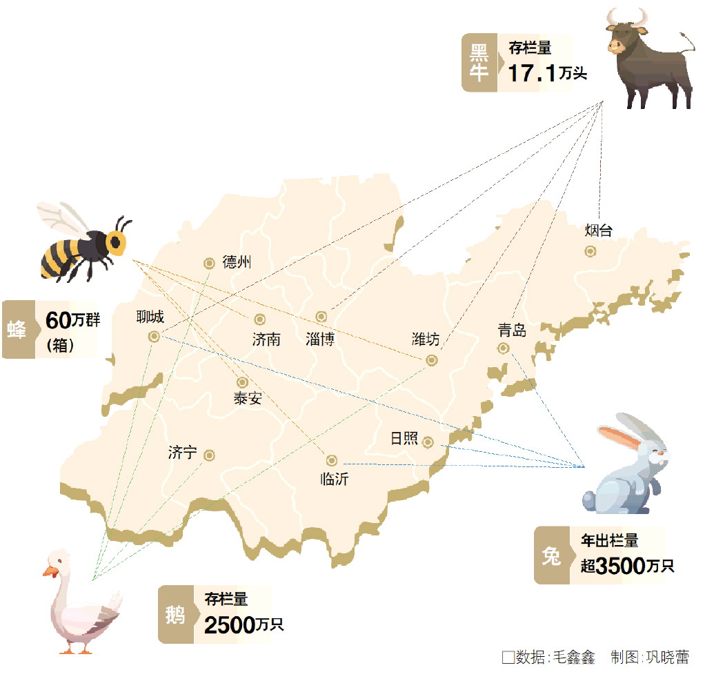 我省特色畜禽种质资源丰富,既有以莱芜猪、鲁西黄牛、小尾寒羊等为代表的地方品种,又有以驴、兔、鹅、蜂等为代表的特色畜种,且养殖历史悠久、品质特性突出。