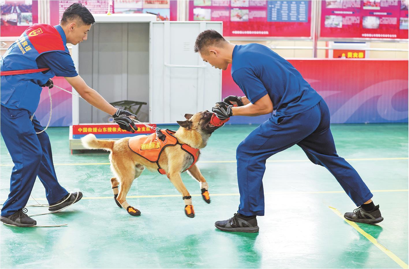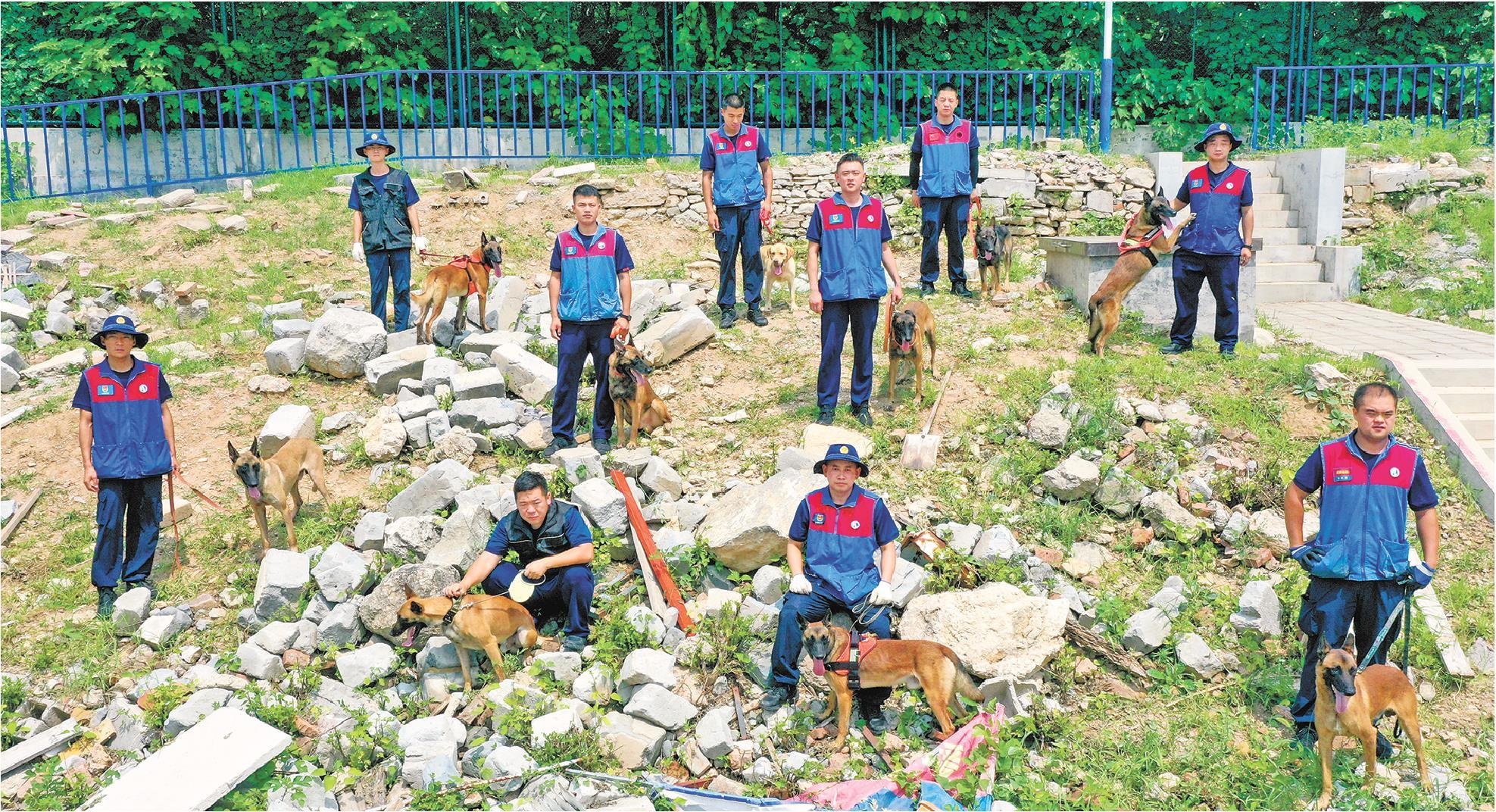 山东搜救犬机动专业支队为宁夏、新疆等全国多地消防队伍输送和培养了大批的搜救犬。(图片由中国救援山东搜救犬机动专业支队提供)