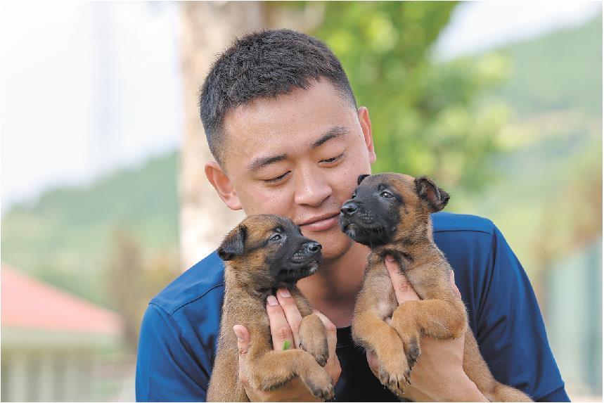 繁育员程雨是搜救犬的“奶爸”,对搜救犬的配种、孕育、接生等样样精通。