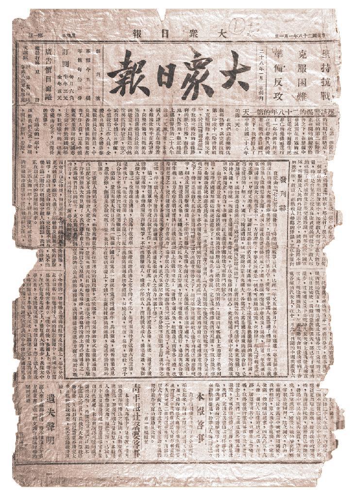 1939年1月1日凌晨五时许,4000份4开两版红色创刊号全部印刷完成!