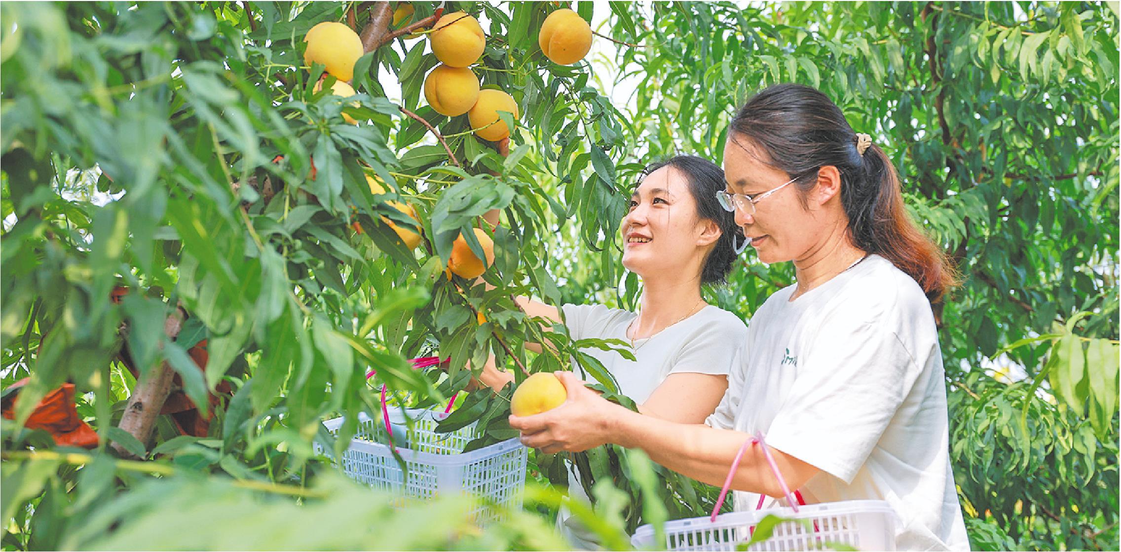 初秋时节,瓜果飘香。聊城市茌平区种植的黄桃、葡萄等水果迎来成熟期。8月23日,茌平区冯官屯镇清梦桃园,游客正在采摘黄桃。黄澄澄的桃子又大又甜,很受欢迎。