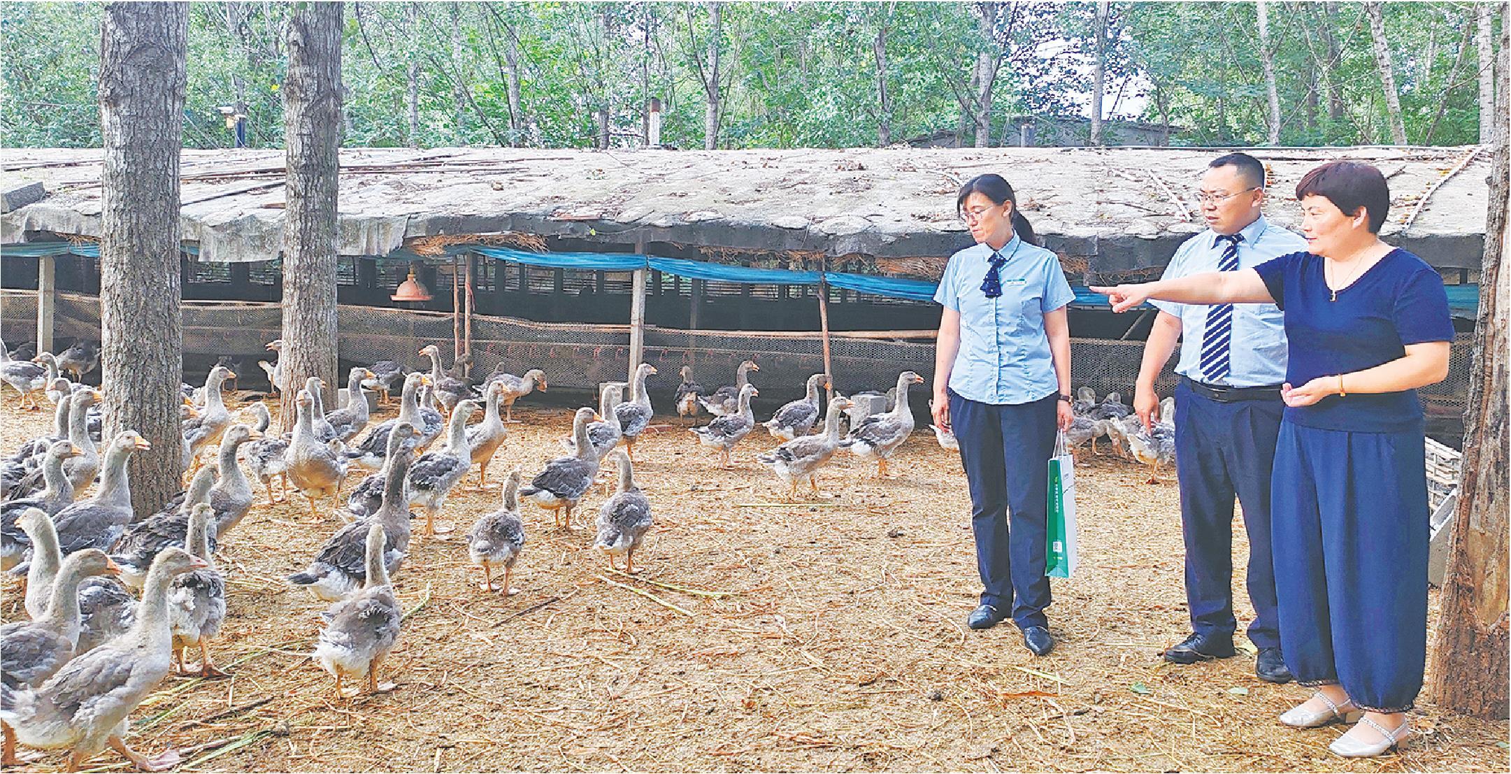 邮储银行山东省分行工作人员走访朗德鹅养殖户,为其提供金融支持。