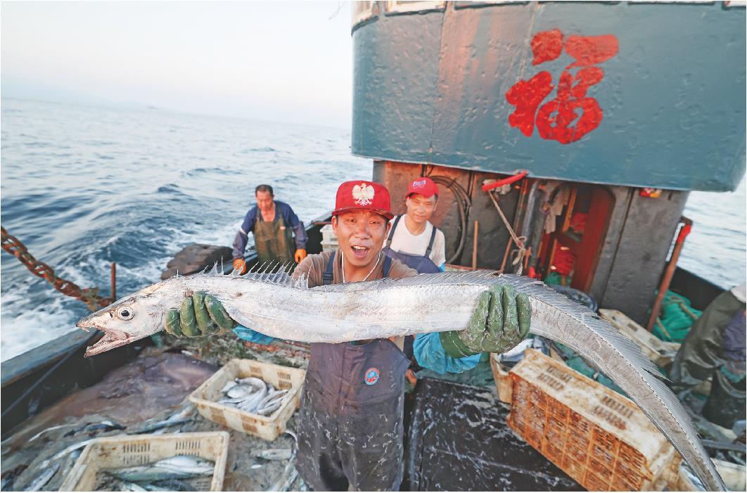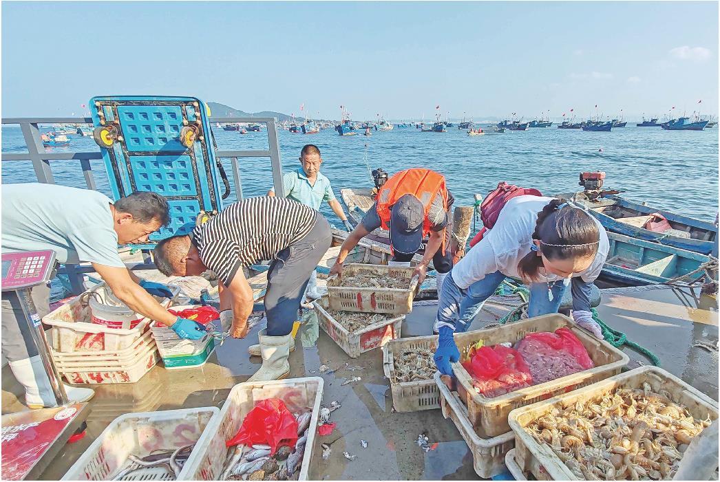 称重、记账,不到20分钟,几筐渔获就被搬上了货车。“比去年卖得还快!”张振擦了擦额头的汗,眼角的皱纹里都透着开心。