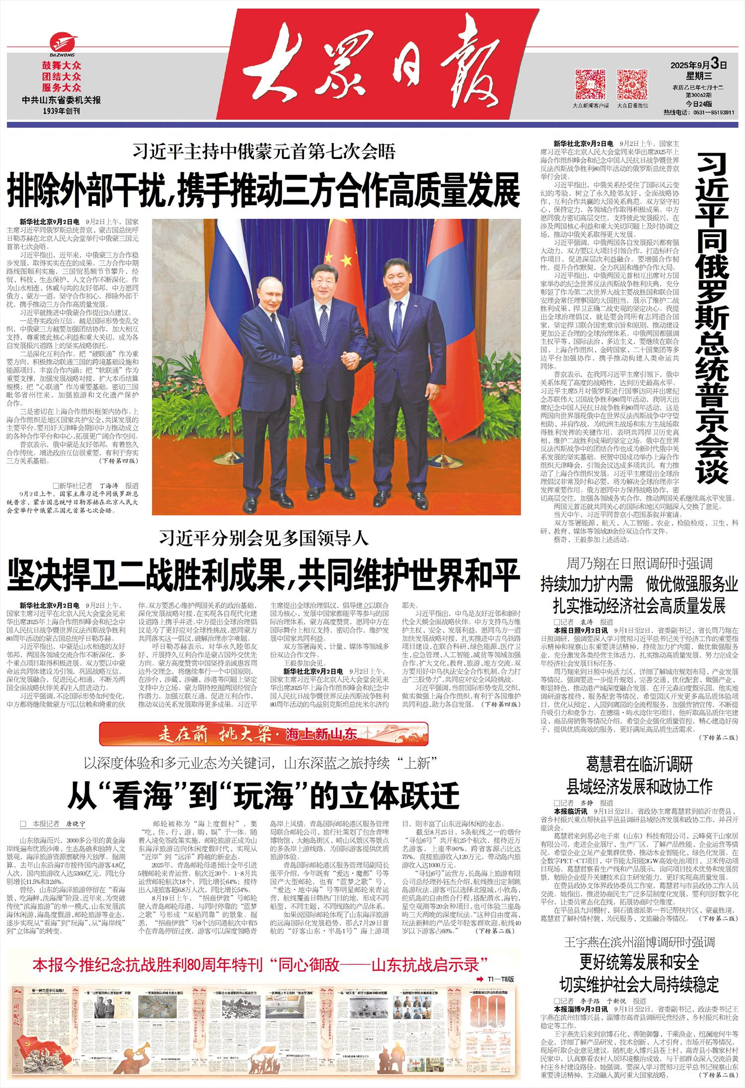 本报今推纪念抗战胜利80周年特刊“同心御敌——山东抗战启示录”