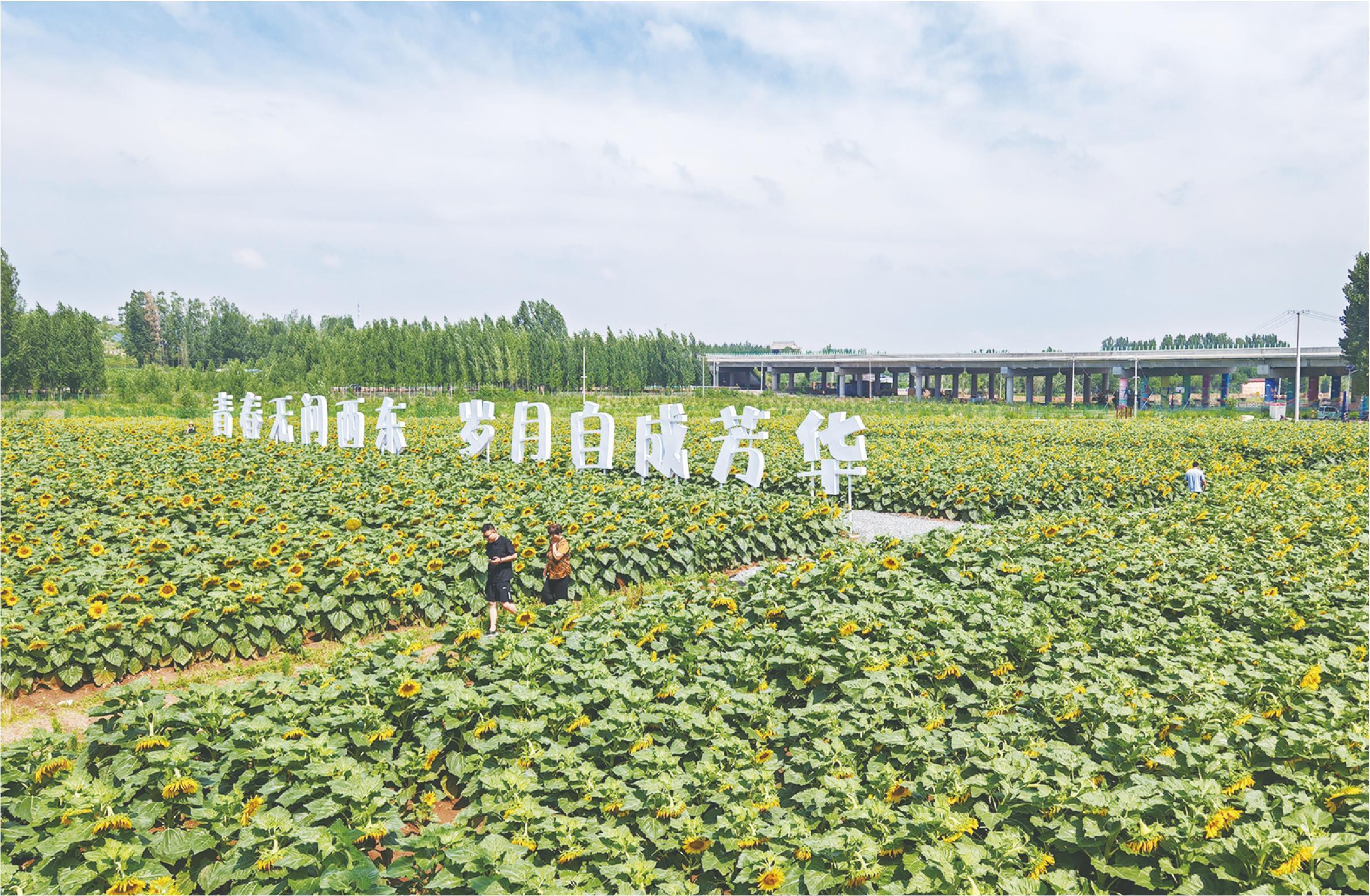 莱芜区高庄街道塔子村709文化产业园门前油葵花盛开,吸引了不少游客前来“打卡”。