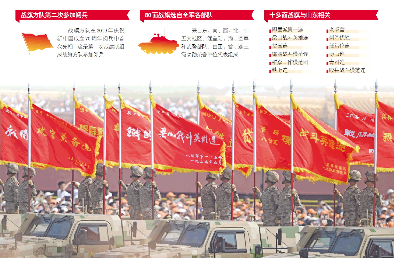 80面战旗亮相九三阅兵,其中十多面与山东相关
