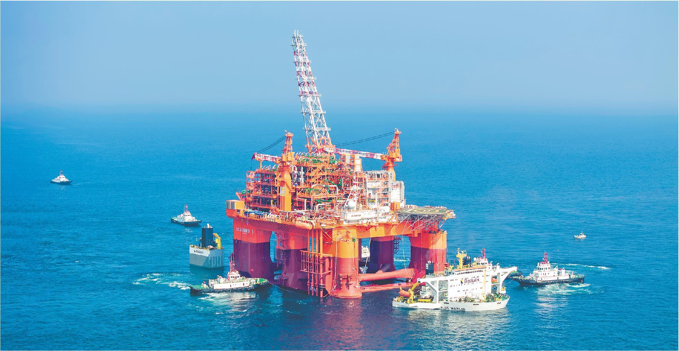 9月5日,由中集来福士承建的大型FPU(浮式天然气生产装置)“Scarabeo 5”在烟台顺利完成出港、拖带和浮装作业,由半潜船运往西非刚果(布),用于海上油气开发。(□记者 杨秀萍 通讯员 姜淞超 周洪洋 报道)