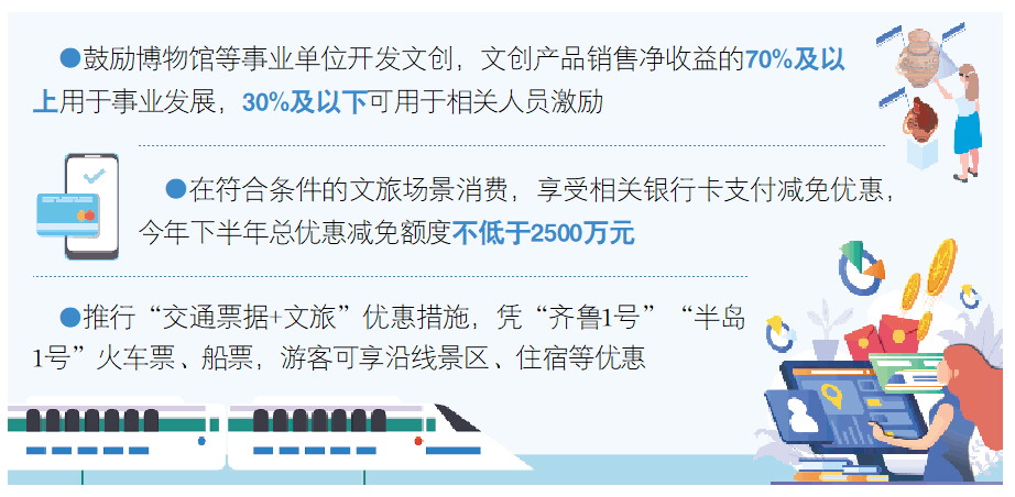 “票根经济”联动模式方面,《工作方案》提出推行“交通票据+文旅”优惠措施,凭“齐鲁1号”“半岛1号”火车票、船票,游客可享沿线景区、住宿等优惠。