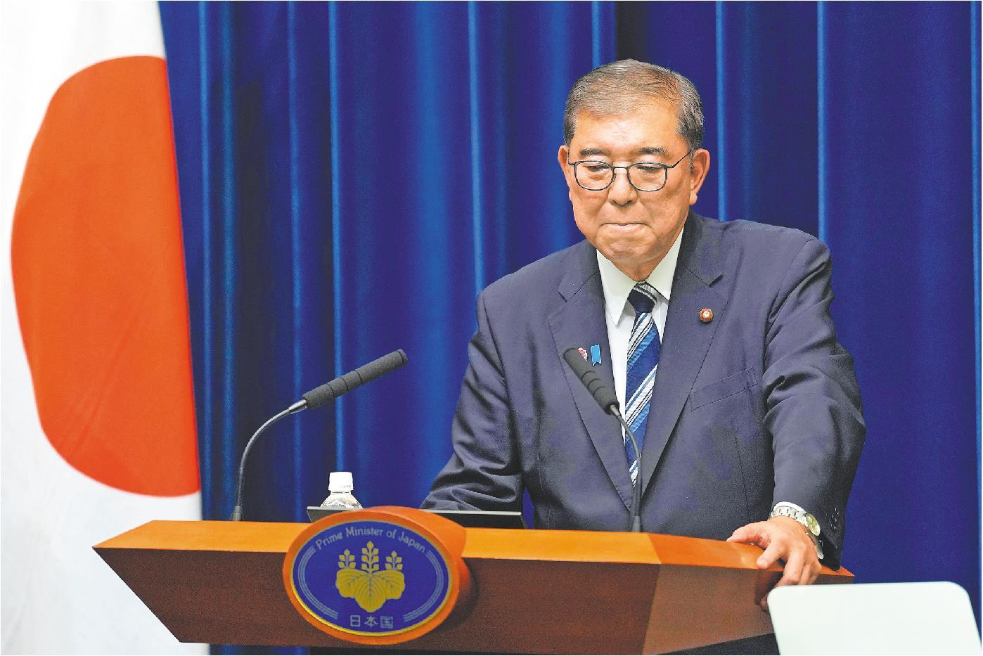 9月7日,日本首相、执政党自民党总裁石破茂在东京首相官邸出席记者会。