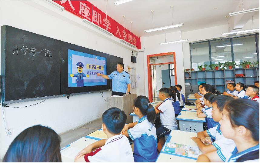 近日,曹县公安局曹城派出所组织民辅警走进辖区学校开展“筑牢校园安全防线 共学安全防范知识”活动。活动现场,民辅警利用视频给学生讲解校园安全、防范电信网络诈骗、防校园霸凌、禁毒等知识。