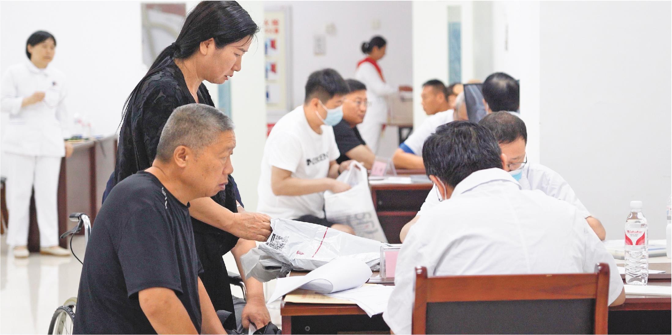 在山东第二医科大学附属医院劳动能力鉴定现场,专家正在给被鉴定职工查体并进行伤情信息采集。