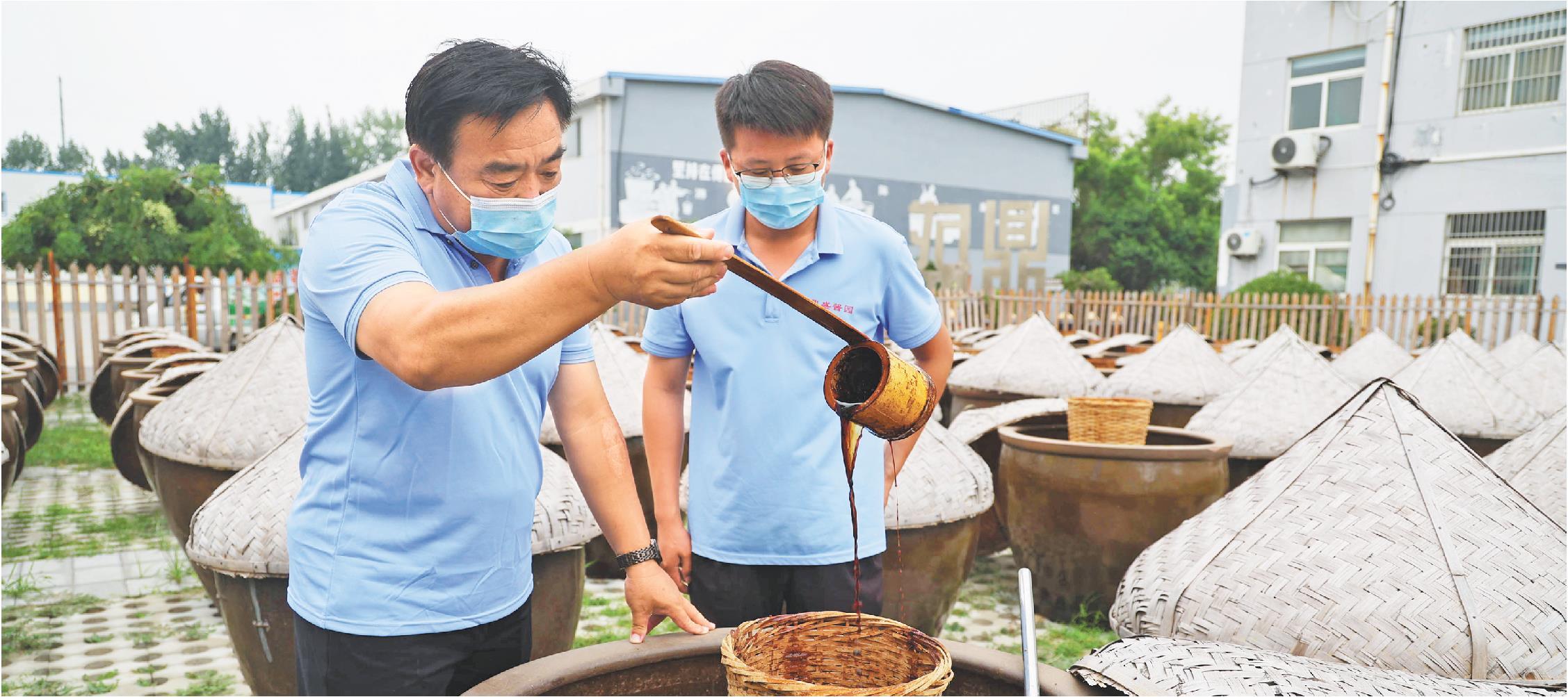 近日,滕州市鼎盛酿造有限责任公司员工在晾晒酱油。在抓好传统调味品生产的同时,该公司做大做强枣庄辣子鸡产业项目,先后研发了辣子鸡专用酱油、专用甜面酱、干煸辣子鸡酱等系列调料,并生产出红烧辣子鸡、麻辣辣子鸡、经典辣子鸡等系列产品。