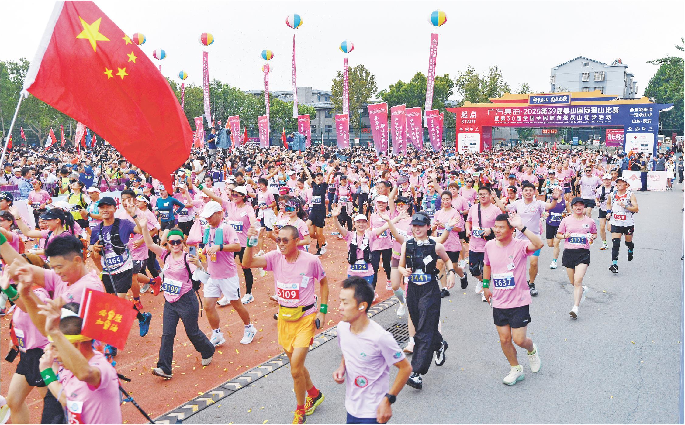 9月8日上午,第三十九届泰山国际登山比赛暨第三十届全国全民健身登泰山徒步活动起跑仪式举行。来自国内外的3000名专业运动员以及8000名运动爱好者参加。