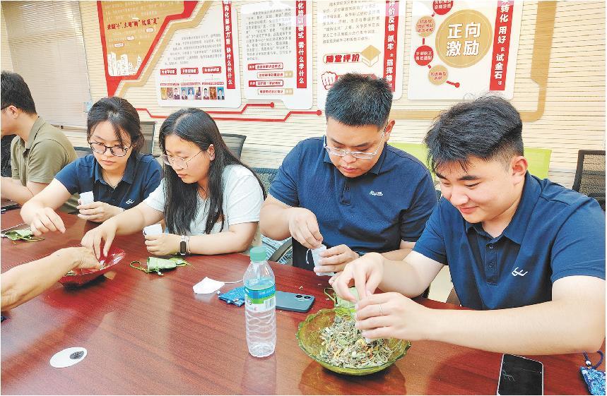 “拾喜青年”的生动实践,不但精准满足青年群体的多元化需求,更为基层治理注入新鲜活力,构建起覆盖学习成长、职业发展、创新创业等全链条青年服务体系,让青年从旁观者变为参与者,成为基层治理的“生力军”,在共建共享中书写青春与城市的“双向奔赴”。上图为青年在体验手工艺品制作。