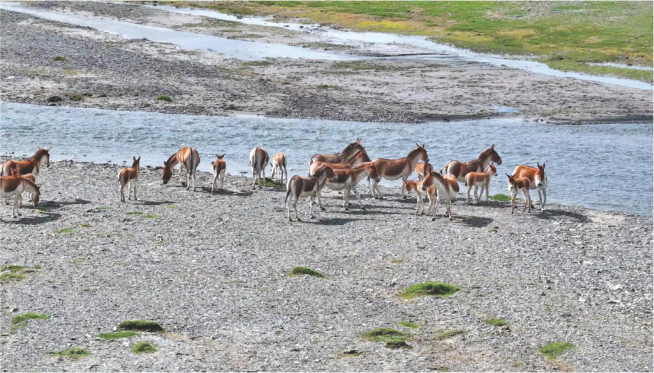三江源国家公园长江源园区的曲麻莱县境内,藏野驴正在觅食。